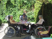 In Burg setzen wir noch auf die vorhandenen Ressourcen der Bewohner. Sie helfen bei der Zubereitung der Mahlzeiten, denn wir kochen hier noch Hausmannskost. Kleinere Gartenarbeiten werden erledigt und dienen gleichzeitig zu Therapiezwecken.